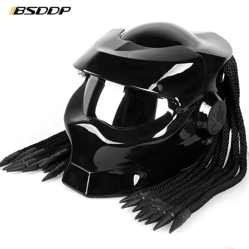 Predator Fiber glass Motorcycle Helmet Full Face Iron Warrior Man unique stylish flip up Helmet moto with LED spotlight